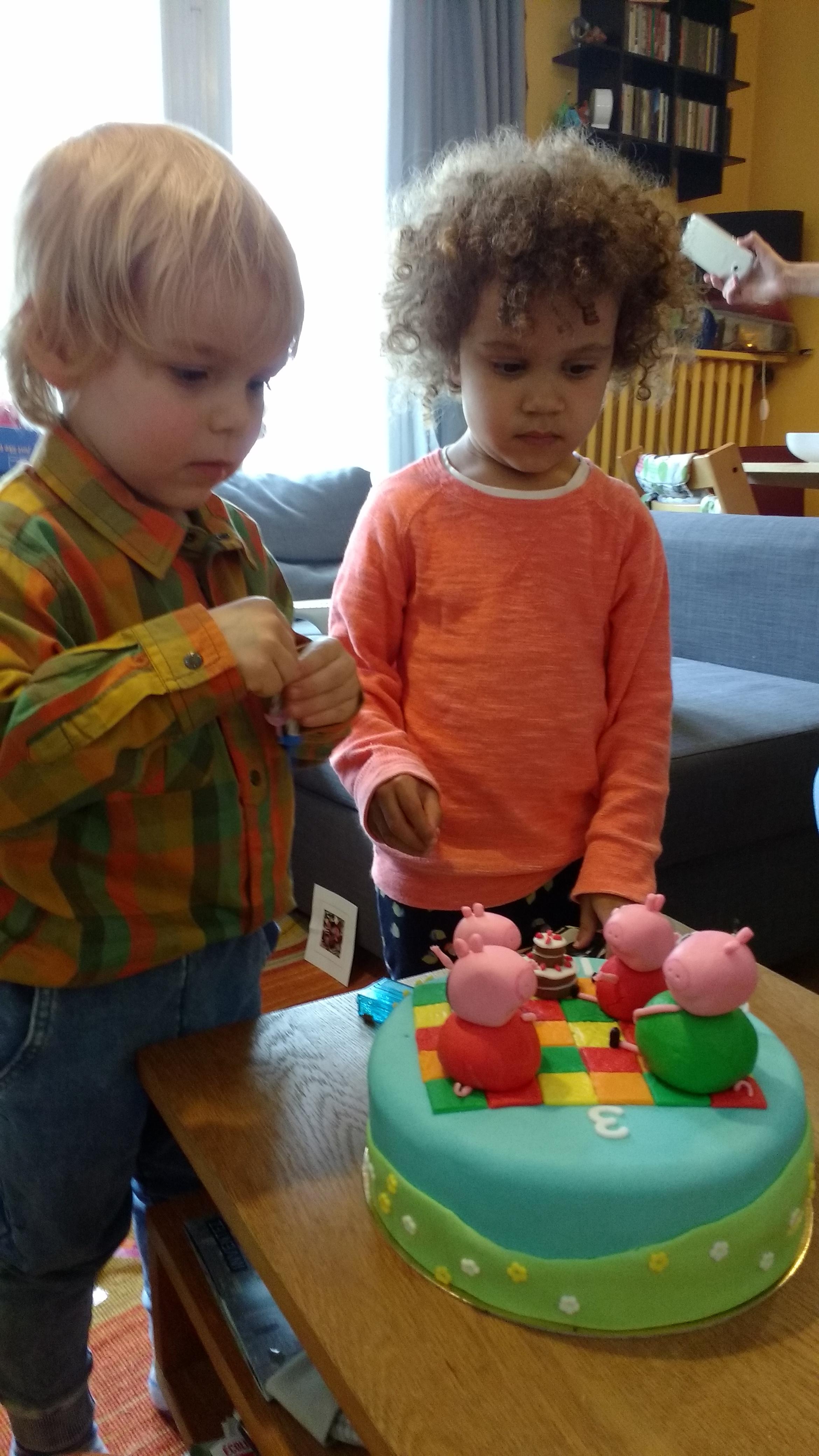 … with his pepa pig birthday cake.