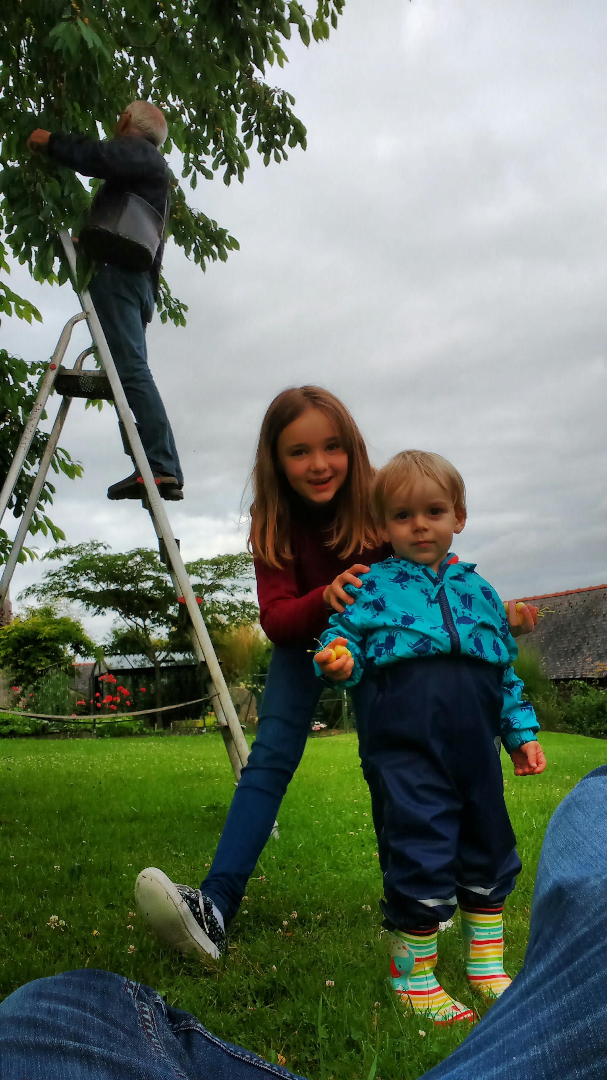 Cherries Even if it is not obvious, summer is here in Brittany with the first cherries. He is happy to eat and pick them.