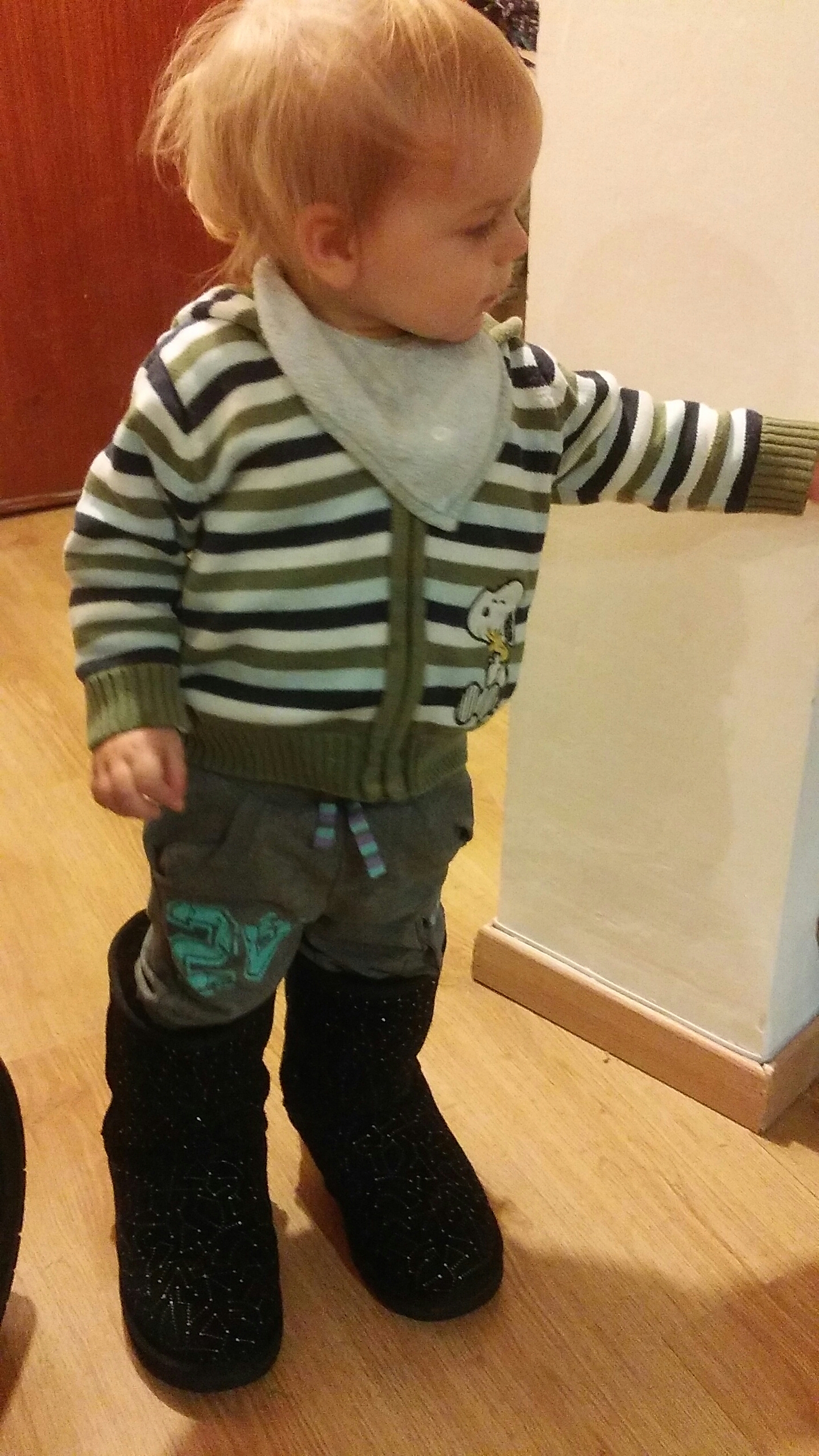 Fashionista Rocking my boots His own sunglasses And my uggs. He looooves my uggs. Wears them every few days.