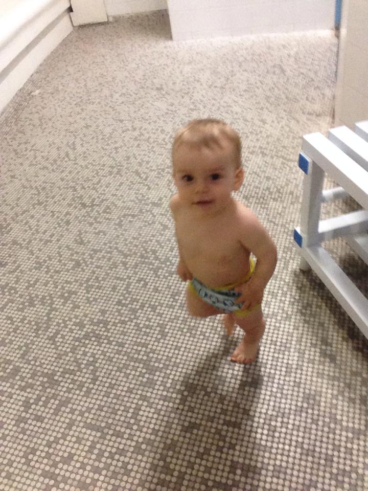 swimming pool! Hollie (Piotr’s nanny) took him swimming for the first time ever! He was NOT impressed with the hat they made him wear though