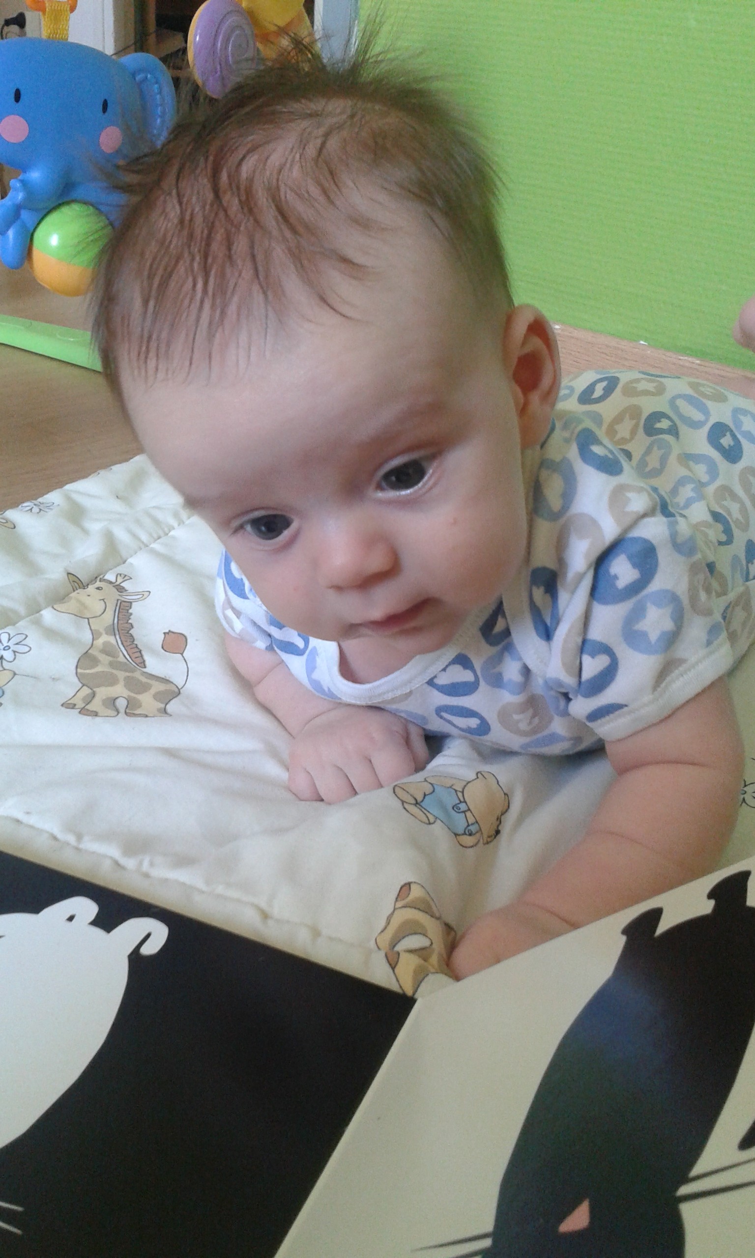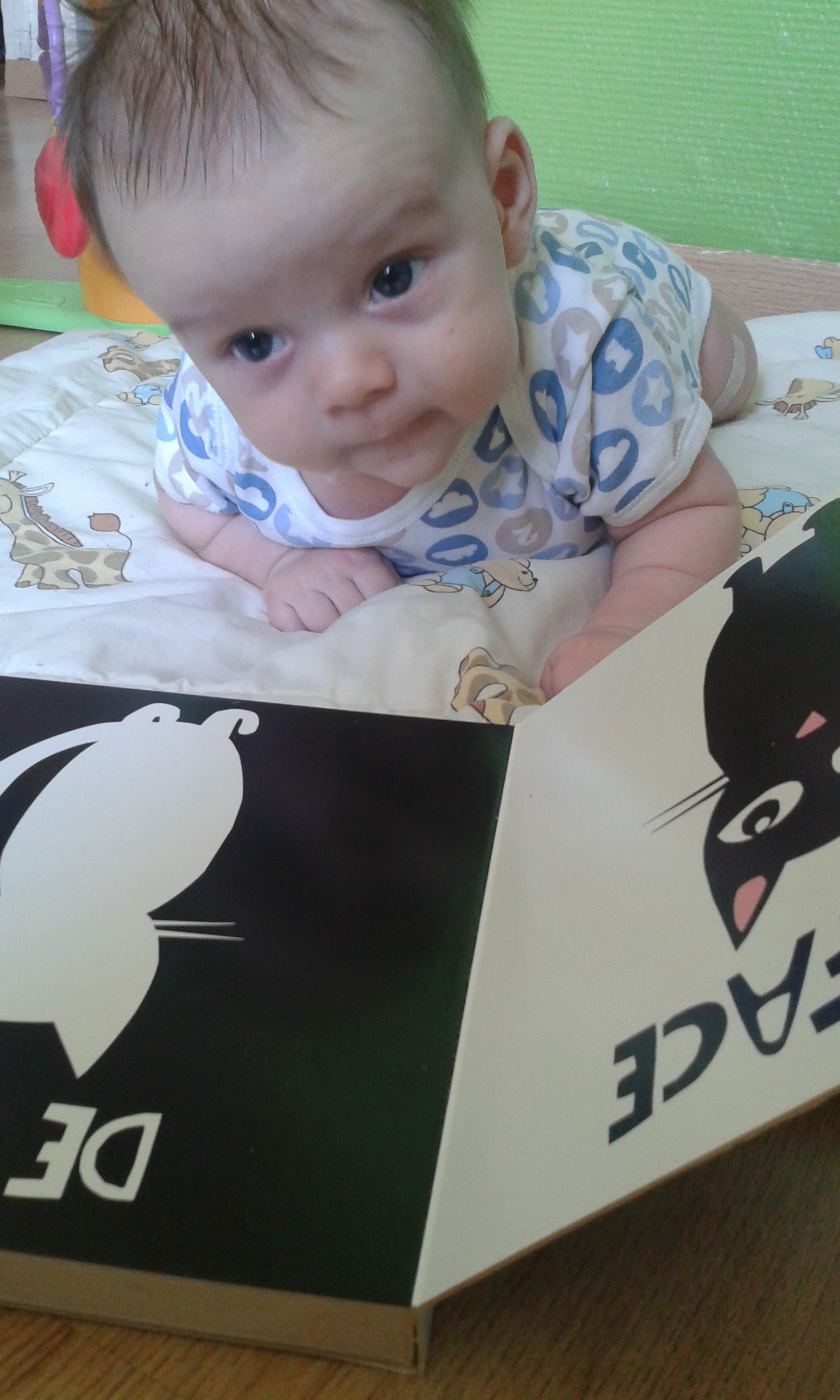 He really likes this book, so I started using it during tummy time and to distract him if he cries for no reason. And it works!